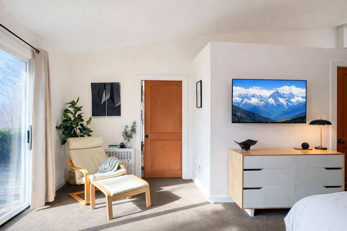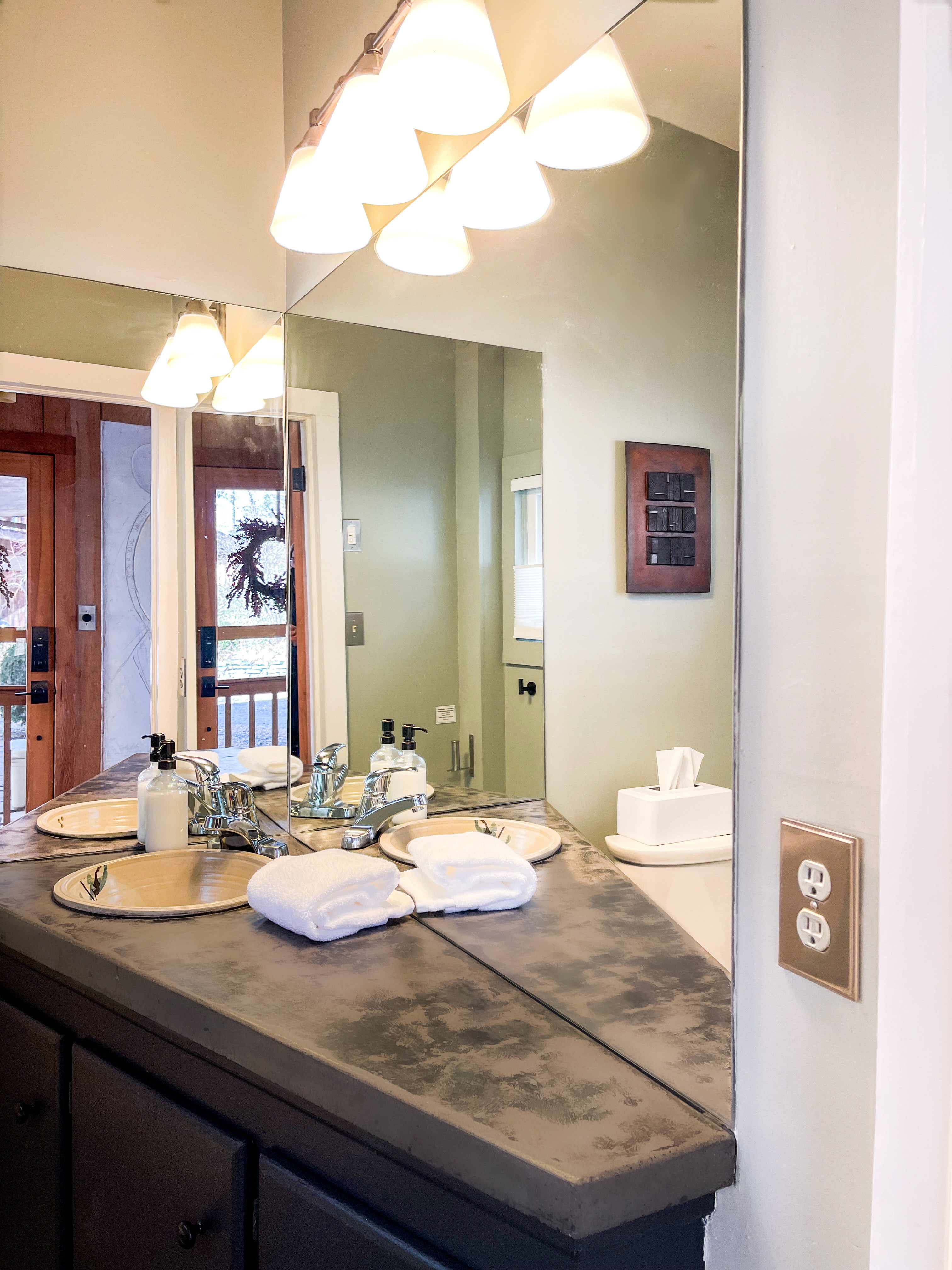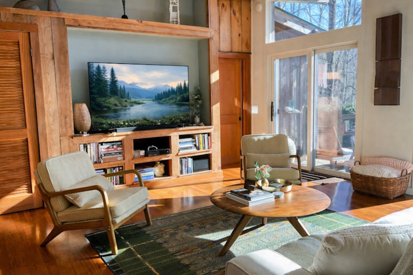 Explore, Create, Relax Hike the trails, visit waterfalls, bake bread in the chef’s kitchen, paint the stunning view, photograph a mountain sunset, take a class at Penland, enjoy a writers’ retreat, soak in the jetted tub while watching a movie, or simply catch up on your reading—this modern glass house is perfect for all of it. (Some trails remain closed from Helene, but many are now open.) *💛 Please click the heart in the top right corner to add us to your wishlist! Doing this helps you find the home later and helps great guests like you find us too. We’ve loved hosting since 2015 and pride ourselves on an excellent stay. Read on for more reasons to visit this year. ⸻ AMENITIES Beds: 2 Kings (per primary), 1 Full Foldout (2nd Primary), 1 Queen (detached office) Total Living Space (with office): ~2,450 sq. ft. General • Safe, rural location 15 minutes from town • 6 private acres at 3,200–3,400 ft. elevation with panoramic mountain views • Fast fiber-optic internet & mesh Wi-Fi • Smart home with Alexa & keyless entry • Motion-sensing exterior cameras • Handmade details & commissioned artwork throughout • Easy access from state-maintained roads Family Friendly • Toddler tableware, Pack ’n Play with sheets • 1,150 sq. ft. terrace with fenced yard & hammock • HE washer/dryer with detergent ⸻ LIVING & DINING (~1,000 sq. ft.) • Indoor seating: bar/prep 7, dining 8 • Outdoor dining for 10 on 1,152 sq. ft. stone terrace • Half bath • 65” 4K HDTV, sound bar • Mini Nintendo & Xbox One S (account required) • Amazon Fire streaming with house accounts • Cable & live sports via Amazon TV ⸻ KITCHEN • Coffee & tea setup: French press, Mr. Coffee w/reusable filter, moka pot, pour-over, hot water dispenser, burr grinder, milk frother, and medium roast Fair-Trade beans and an assortment of teas • Gas range, convection oven, Sub-Zero fridge, stainless dishwasher, microwave • KitchenAid Pro mixer, Ninja blender & food processor • Cuisinart cookware & utensils • Handmade Fork Mountain pottery tableware • Pantry staples & cleaning supplies • 30+ sq. ft. of prep space—cook and socialize • Weber charcoal grill (charcoal not provided) • Seasonal apples, pears, blueberries, and fresh herbs on property ⸻ PRIMARY SUITE (~500 sq. ft.) • King bed, HDTV, chaise lounge reading nook, walk-in closet • Ensuite bath: jetted tub, separate shower, heated floors, custom fixtures • Hairdryer, toiletries, makeup mirror, plush towels • Independent heat & A/C SECOND PRIMARY (~500 sq. ft.) • King bed, queen foldout couch, HDTV, closet & dresser • Ensuite bath: tub/shower combo, makeup mirror, hairdryer, toiletries • Separate water heater & independent climate control DETACHED OFFICE/3rd BEDROOM is available upon request. As us for details. An additional $30 cleaning charge will apply. ⸻ ABOUT THE HOME Originally two cabins joined by artist and former Penland director Bill Brown Sr., the home now features two suites and an open, light-filled living area. Many original railings and details remain, including a Doug Sigler-designed kitchen. Its passive-solar design captures warmth and sunlight year-round, framing mountain views from every room. The home features commissioned artwork and handmade pieces that reflect the area’s craft heritage. ⸻ VISITING IN THE OFF-SEASON: Winter views are breathtaking! Trails and waterfalls are quiet and serene. Some businesses adjust hours mid-December through February, but others offer pop-ups, events, and winter menus. If you’d like help deciding whether the off-season fits your plans, just ask—we’re happy to help. ⸻ CHILDREN: Children are welcome! This is a home, not a museum, but we ask parents to be attentive—move delicate items or cords out of reach as needed for safety. ⸻ ✅ Have a larger group? Our sister property, Dougs Way, sleeps 10 and is just 4 minutes away. Ask for details!